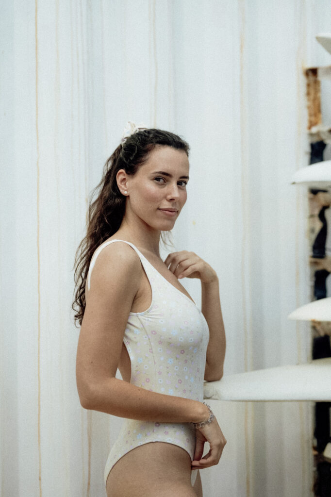 La colección final presenta una serie de bañadores y bikinis con patrones que capturan la esencia del verano mediterráneo de una manera moderna y sofisticada.